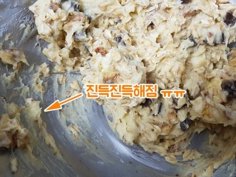 공기를 머금고있어야 할 쿠키반죽이 따뜻한 물질을 만나 애써 크림화 시킨 버터가 녹아 진득해지기 시작한거죠!!!!!!!