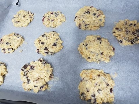 부랴부랴 크랜베리까지 넣고 쿠키팬에 팬닝!!!