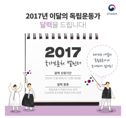 야 독립운동가 2017달력 받을사람 무료 ㄱ