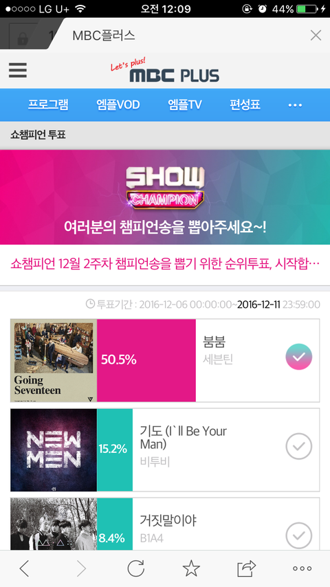 정말 할일이 많네 핳 와이폰링크: http://m.mbcplus.com/showchampion.aspx 안드롱이등은 앱잇당'