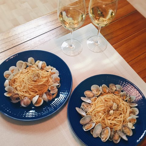 하루 종일 스케쥴을 소화하고도 고집부려 만들었던 맛있는 봉골레. 저한테만 모시조개를 다 골라주고 본인은 바지락을 ㅠㅠ