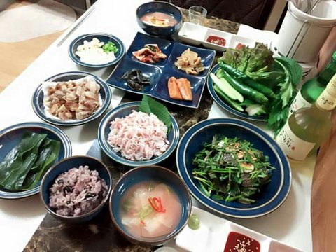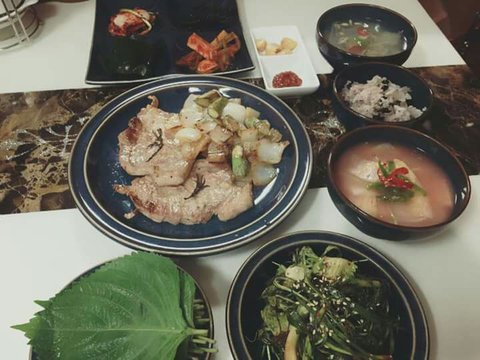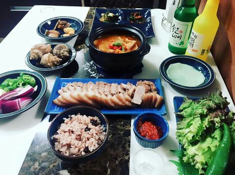 수육, 세가지 찌담은 것, 김치찌개, 쌈야채 등