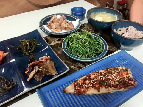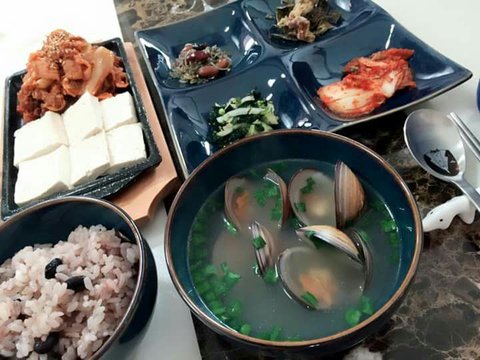 재첩국, 소고기구이, 오이무침, 고등어조림