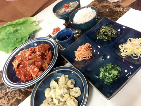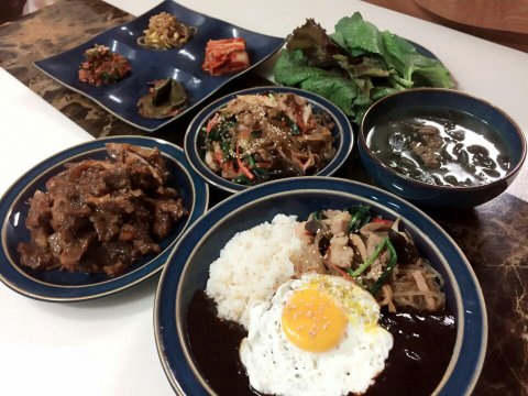 소불고기, 해파리냉채샐러드, 해물순두부찌개, 쌈채소