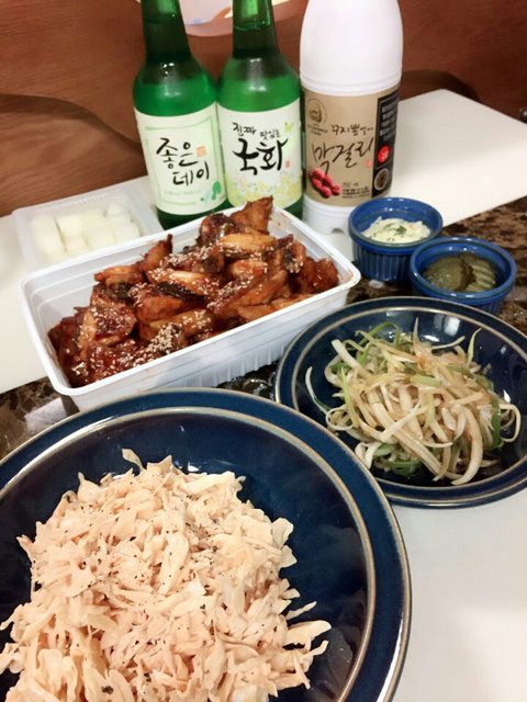 삼계탕, 전날 먹다남은 족발로 냉채족발, 마늘쫑무침, 어묵볶음
