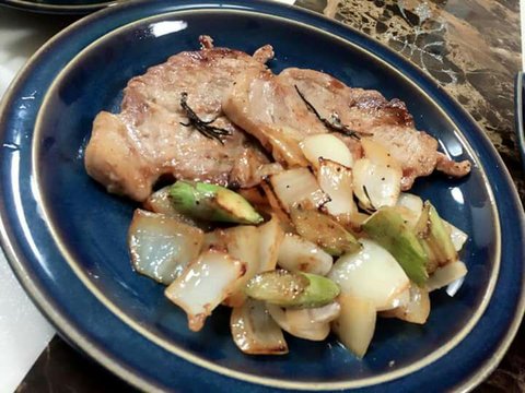 목살스테이크(feat.아스파라거스,로즈마리), 겉절이, 콩나물국