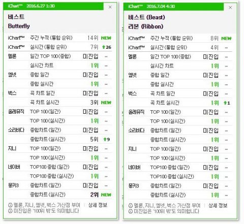 비스트:레전드전성기를 잃은지오래된그룹...탈덕도엄청많이하고 라이트팬 급증함.굿럭때부터 음원이 서서히망하더니 작년발매 yey는 발매당시 20권까지 맴돌다 2달좀버티고 차트아웃됨...음반도 의외로 별로 못팔음...장현승탈퇴로 많은사건이있었고 소속사분쟁으로인한 갈등이많았음..그래도 음원은 쎄서 조금은 버틸듯