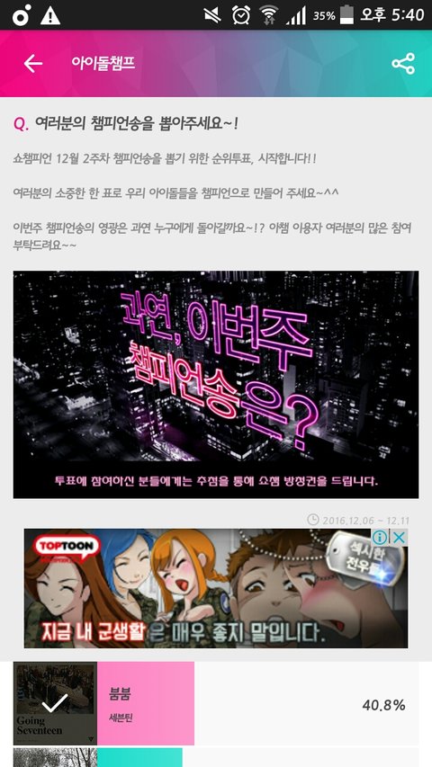아1이1돌 챔1프 앱 깔고 12월 2주차 1위 투표