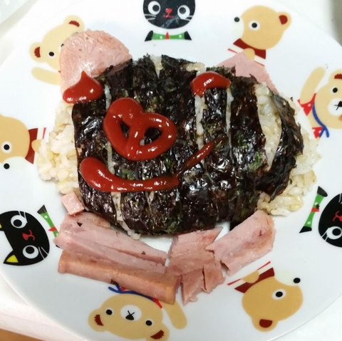 어떤가요? 제가 아이디어를 내서 만들어본 돼지 캐릭터 밥입니다.