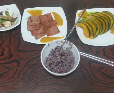 집밥입니다. 단호박 삶은거구요. (어떻게 삶는지 몰라서 대충했더니 딱딱했습니다.)
