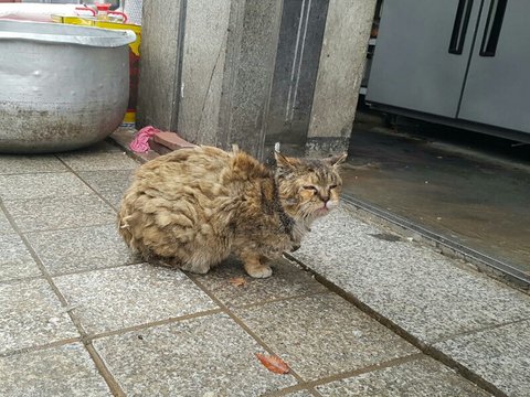 외관상 구내염으로 인해 그루밍조차 못하고 있어 꼴이 많이 아닌것 같아 이 아이를 구조하려고 다가갔다가 놓치고 말았습니다.