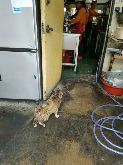 상태를 봐 많이 아픈데도 불구하고 식당에 밥을 얻어 먹으러 아이가 기다리고 있더군요.