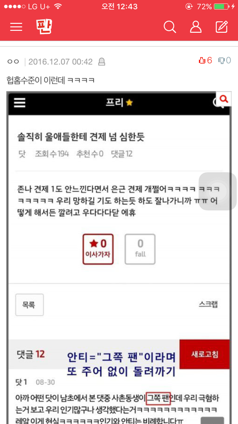 차돌박이 그 글 쓴거 저쪽 팬이라는 증거부터