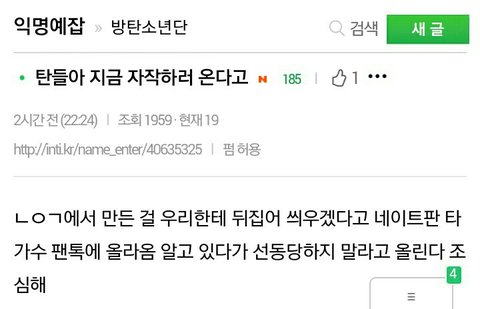 무려 2시간 전에 자작을 알아차리고 인1티에 널리 알렸다~~~~~~..