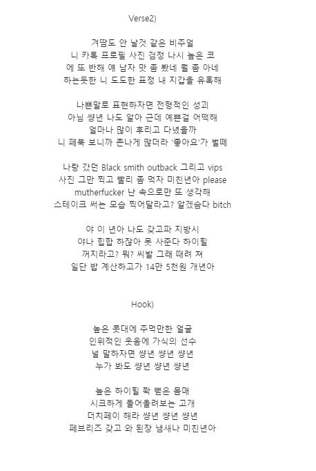 아니 얼굴가지고는 절대 안까는데 저건 가사가 저게 뭐냐 진짜...; 마음이 빻았네