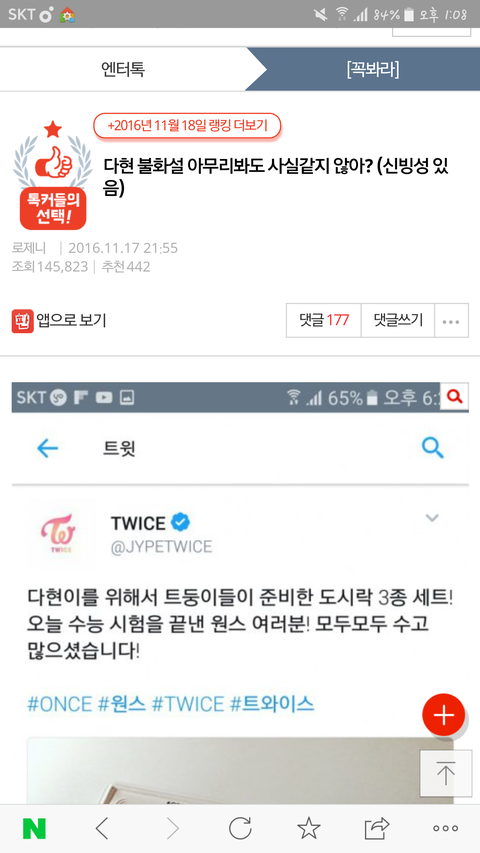 일단 첫번째로 멤버들이 다현이 수능 도시락 만든 트윗이 올라 왔을때