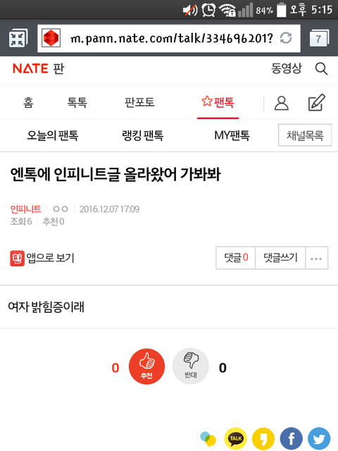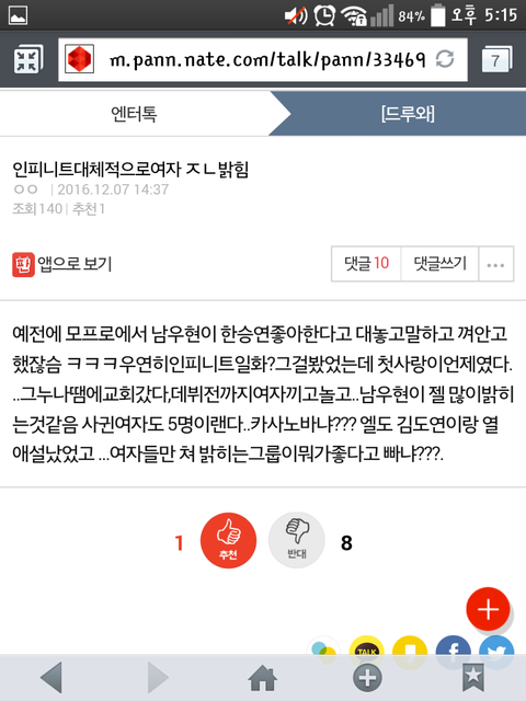 엔톡에 인피니트글 올라왔어 가봐봐