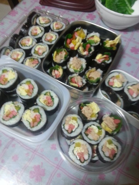 참치김밥으로만들었어요~ 양도넉넉히해서 온식구들도 같이 먹었답니다 ㅎ.ㅎ