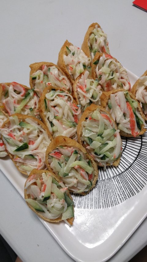 게맛살과 오이 살짝절여서 물기짠후 유부초밥!