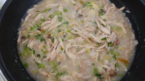 마늘잔뜩넣구 삶은 닭육수에 닭고기 찢어넣구
