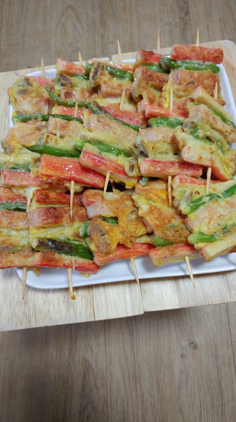 맛살. 스팸. 버섯.꽈리고추 로만든 산적인데