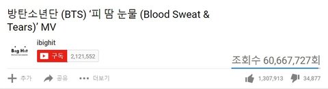 +)케이팝가수 뮤비 좋아요 일위 피땀눈물^♡^