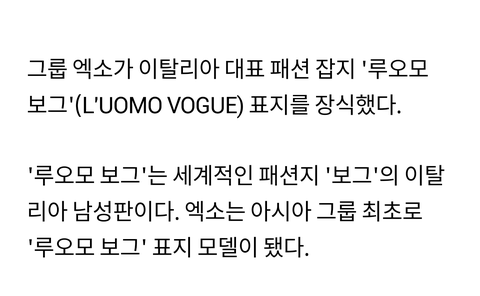 엑소, 이탈리아판 '보그' 표지 모델 장식