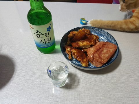혼술중에 냥이 난입