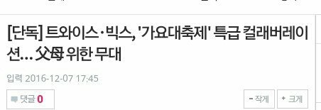 우리 가요대축1제에서 트y스 분들이랑 합동공연한데ㅠㅠㅠㅠㅠㅠㅠ