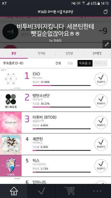 참 그리고 석아대 전광판에 투표기부 부탁글 쓸때 되도록이면 투표이력 들어가서 찍은 스샷으로 배경화면에 띄워주길바래!! 인증을 해야 캐럿들이 보통 기부 하더라고