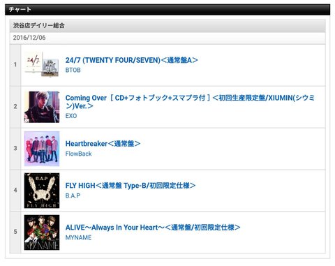 시부야타워레코드 12월6일자 랭킹에