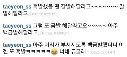 태연 댓글 말투 진짜 너무 귀여움ㅋㅋㅋ이거 팬들이 흑발해달라고 찡찡거렸을때 댓글로 답해준거