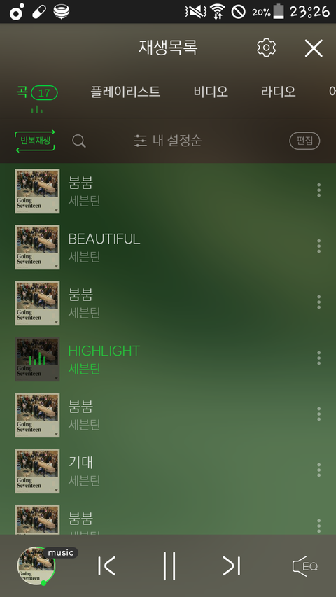 반복재생누르지말고 전체재생눌러야해