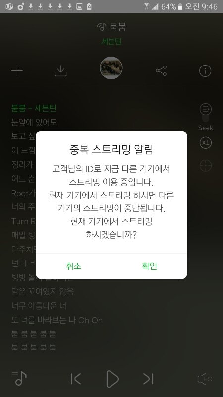 세븐틴틴틴 너와나 사이에~ 하고서 '컴온' 이었어