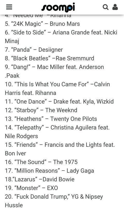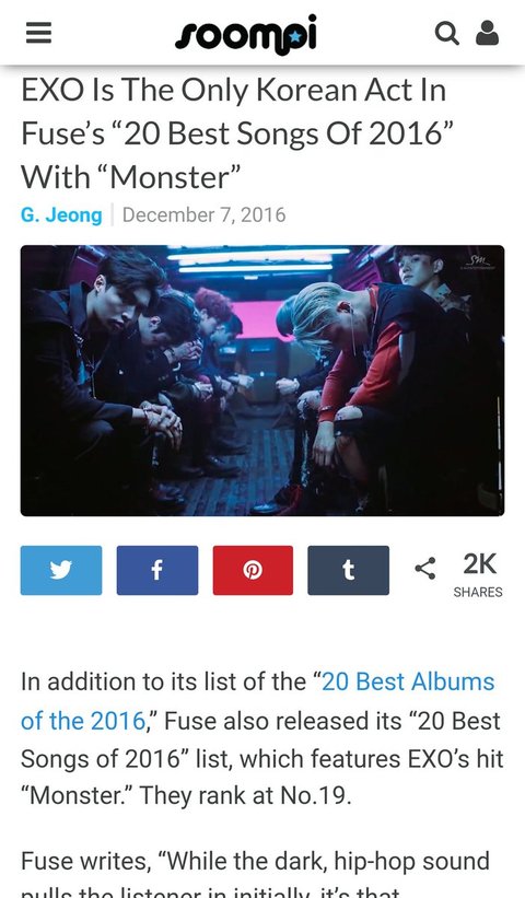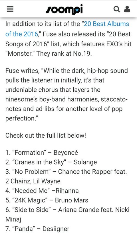 퓨1즈에서 선정한 2016 최고의 노래 top 19 몬스터