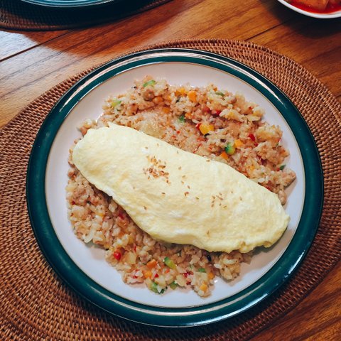 그냥 볶음밥인데도 달걀만으로 비쥬얼이 뿅 바뀐 남편의 식탁입니다.
