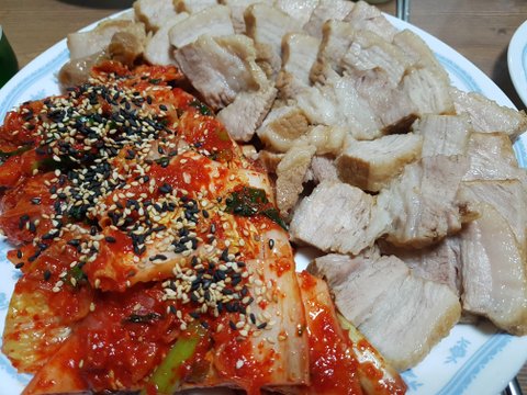 요즘 김장철이라 김장하자마자 정육점가서 사온 삼겹으로 후다닥 수육만들어 소주 한잔. 크