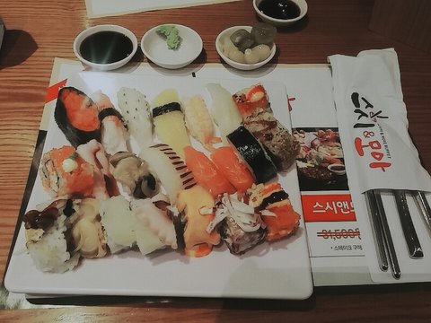아 종류별로 있는건 내가 초밥은 거의 종류상관없이 좋아해서 첫접시엔 계란초밥이나 아 이건 아니다 싶은거 외엔 다담아와서 먹고 맛있던걸 두번째접시때 가져와서 그런거