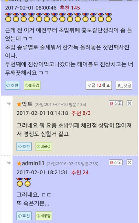 흠 쨋든 중간층??ㅋㅋ을 위해 가격을 올라가되 밥양이 좀 적은곳도 생기면 좋겠다ㅎㅎ