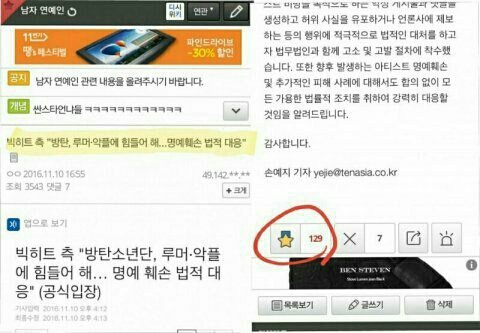 일단 엑셀임을 밝히고 시작하겠습니다. 아미랑 엑셀이랑 사이 안좋은것도 알고, 여기서 뭐라고 얘기해도 싸움이 붙을거같긴 하지만 일단 저희의 입장도 얘기를 해보도록 하겠습니다. 저희는 글을 올렸을 때 그걸 방탄소년단 팬분들에게 다 뒤집어 씌우려 한 것이 아니라, 우리도 이렇게 욕먹고 있고, 아미 분들이 자꾸 끌올을 하셔서 저희도 끌올 해가지고 앞으로 서로 끌올하지 말자 라는 의도도 있었습니다. 아미 분들이 이 글에서 말씀하신 것과 마찬가지로 저희도 몇몇의 방탄 팬분들에 대해 이야기를 한 것이지, 모든 팬분들을 욕하려 한 것은 아니였습니다. ( 요즘 올라오는 글들을 보니 아미분들이 저희에게 듣고싶은 사과와, 궁금해 하시는 것이 많은 것 같은데 저 혼자서 사과해봤자 무슨 의미가 있겠습니까. 저희 엑소 팬톡 분들과 상의를 하고, 글을 구성해서 최대한 빠른 시일 내로 올리도록 하겠습니다. )저희는 이번에 모든 방탄 팬분들을 욕하려 글을 쓴 것이 아님을 꼭 밝히고 싶고, 절대 고의적으로 욕을 먹이려고 썼던 글이 아님을 강조하고 싶습니다. 그리고 ""몇몇"" 아미 분들이 남연갤의 주가 엑소라고 말하셨는데 그건 절대 아닙니다. 그렇다고 남연갤의 주가 아미다, 누구다 라는 확실한 근거도 없고, 저희는 남연갤이 전부 아미다 라고 말할 생각도 없습니다. 단지 몇몇 아미분들이 남연갤이 아미가 아니라고 우기는 것이 어이가 없을 뿐입니다. 아래 사진을 보시면 알수 있으시겠지만, 남연갤에는 아미도 있고, 여러 타팬이 섞여있습니다. 그리고 남연갤의 목적이 엑소 찬열이 악플을 보고 자살하게 만들자는 의도인데, 어떻게 거기에 저희 엑소엘들이 존재할 수 있겠습니까. 저희는 남연갤의 몇몇 아미분들을 욕한 것이지 네이트판에 있는 아미분들을 욕하는 것이 아닙니다. 오해 없으셨으면 좋겠고, 다시 한번 말씀드리지만 저희가 그때 그 글을 올린 이유는 머글들과 엔터톡 사람들에게 우리도 욕을 먹고 있으며, 남연갤과 인스티즈 등 다른 커뮤니티에서 비방의 글과 댓글이 자주 보인다는 것을 알리려고 했던 것이지 네이트판 아미들이 그랬다는 말은 한번도 꺼낸적이 없습니다.