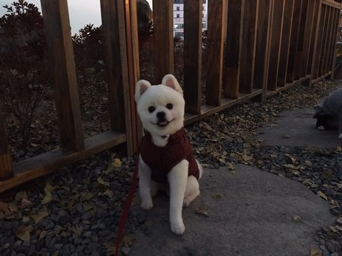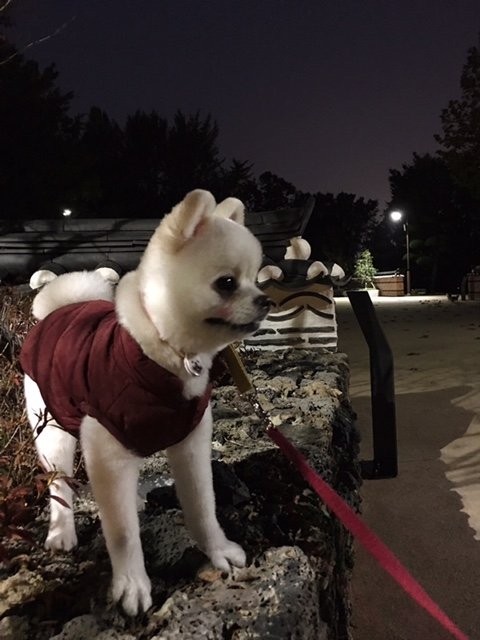 -협조를 아주 잘하고 있어 ㅋㅋㅋ 늘 같이 산책 다니는 두치네에게 받은 패딩 조끼입고,