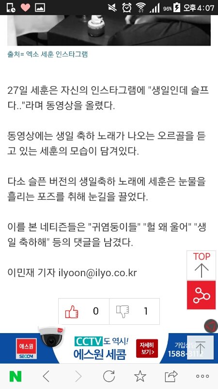 뒷북이면 ㅈㅅ 오늘 컴퓨터하다가 엑소 쳤는데 저 기사 뜨길래 드가봤는데 세훈 ㅇㅈㄹ ㅋㅋㅋㅋㅋ