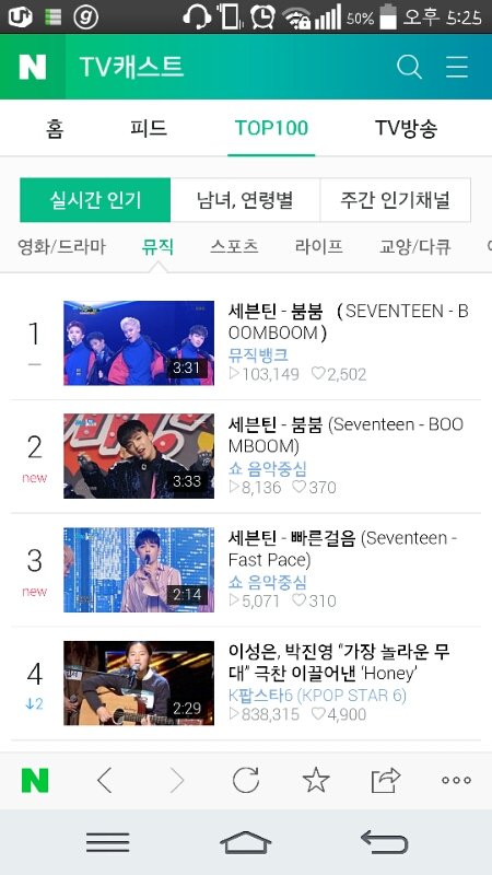 영상 줄세우기...! 1, 2, 3위가 전부 셉틴이얔ㅋㅋㅋㅋㅋㅋ 그리고 코디제발.. 빠른걸음옷은 그렇게 이쁘던데 붐붐은 왜..?
