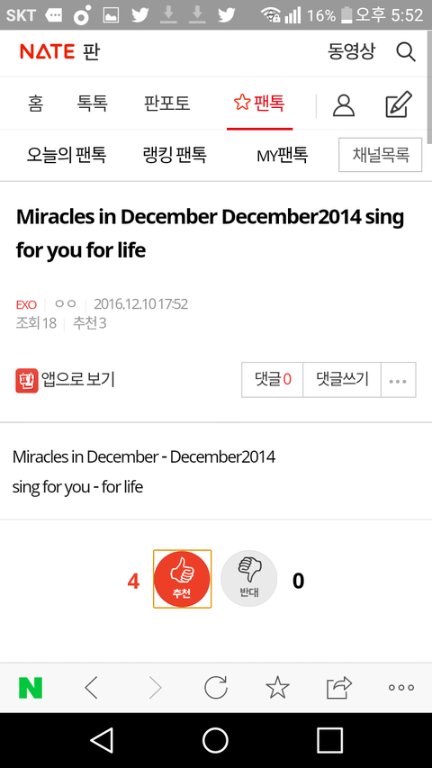 대충 이어보면 2014년의 엑소엘을 위해 평생 노래할게...