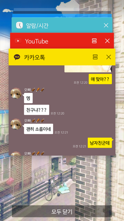 그런데..일이 터짐.터졌다고 해야하나?아무튼ㅠ우선 남친이랑 나랑 오빠는 같은 학원에 다님.당연히 남친이랑 나는 1학년반이였고,오빠는 2학년반이라 층도 다르고 시간표도 다 달라서 만날수가 없었는데,학원에서 한국사스터디를 시작함.그걸 오빠도 한다고 하고,남친도 한다고 하더니 거기서 만났나봄.참고로 나는 남친한테 오빠가 한명있다고는 했지만 그게 너랑 같이 스터디 하는 그 사람이라고는 말하지 않음.그냥 말 할 이유가 없었음ㅋㅋ..그리고 오빠는 애초에 내 존재를 부정하는 사람이니까....ㅎㅎ웃프당..그냥 서로가 나로 인해서 인연이 있는 사이라는걸 몰랐음.