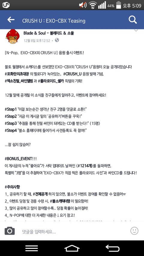 첸백시 크러쉬유 이벤트인데 올라왔어?? 셀카준대 많이들 참여해>.<