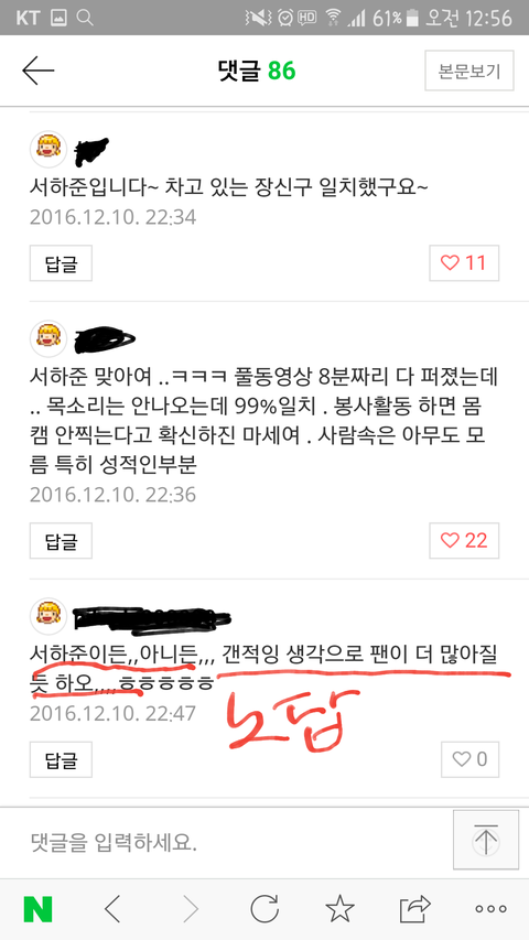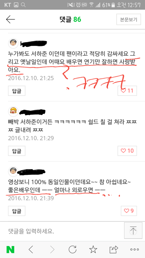 댓글 훨씬 많지만 그 중 일부만 캡쳐해옴