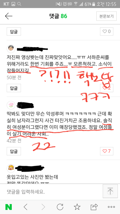 쉴드 쳐주는 댓글들 진심 어이없곸ㅋㅋㅋㅋㅋ