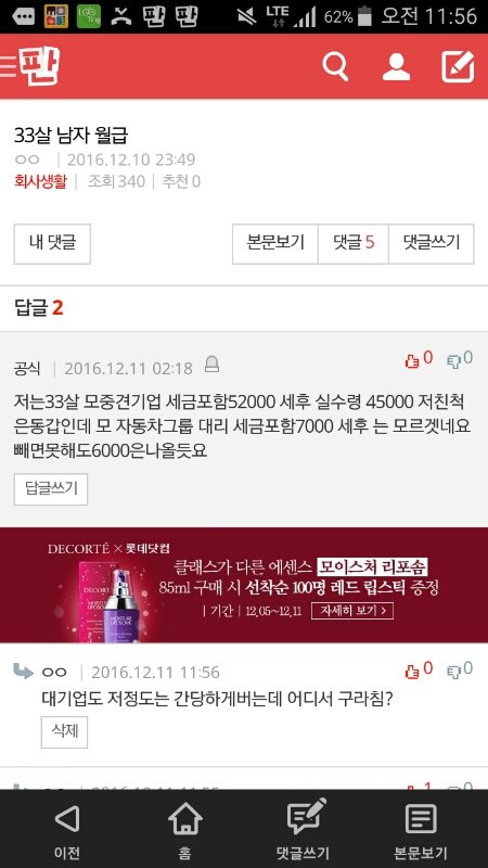 중견기업 공장직도 풀근으로 해봐야 월3백 간당하게 버는데 해외기업이나 대기업이라면 몰라도 중견기업 33살에 세후45000이랜다. 4억 5천? 4500도 힘든데 자작도 정도껏..