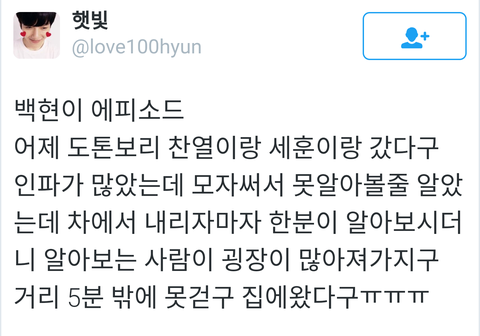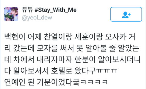 백현이 어제 오사카 목격담 멘트.. ㅋㅋ